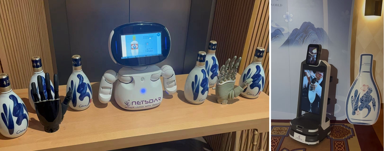 9月29日、大阪帝国ホテルにて開催された【中国汾酒・世界へ香る】新商品発表会において、NetsdarRobotSolutions株式会社の案内ロボットが卓越したAIパフォーマンスで登場し、来場者の注目を集めました。