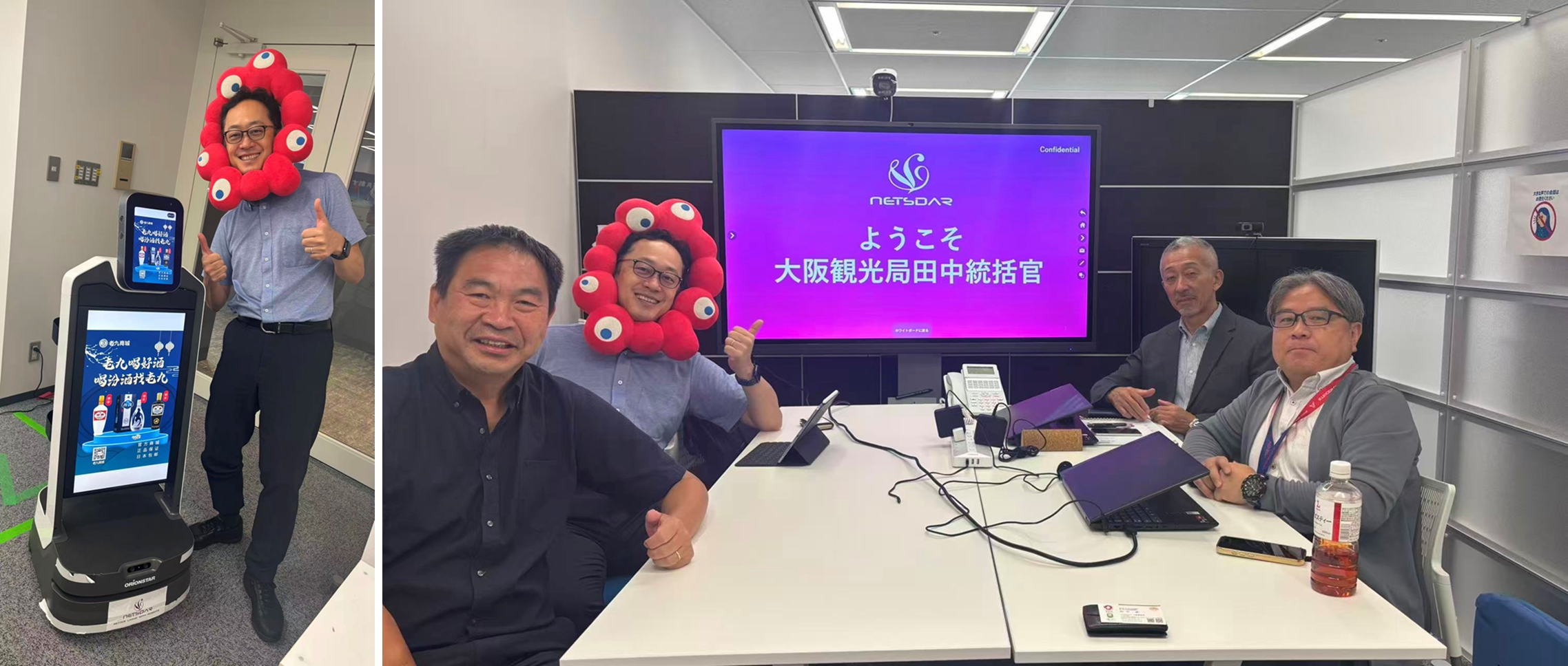 10月6日、大阪万博での関連イベントを終えた後、大阪観光局の統括官・田中嘉一氏が、万博のマスコットを身に着けてNetsdarRobotSolutions株式会社の東京本社を特別訪問。代表取締役社長・丁鋼柱氏、岩本本部長、松本事業部長ら幹部陣と深い意見交換を行いました。